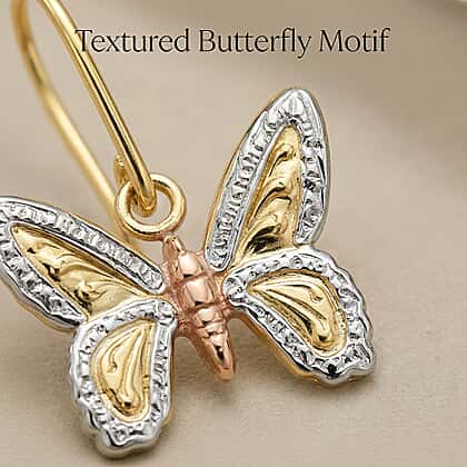 9K 3 Colour Gold 11mm X 15mm Textured Butterfly Drop Earrings