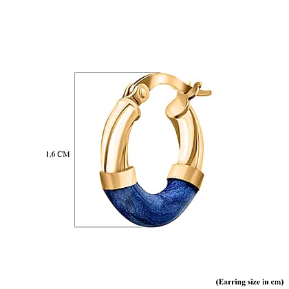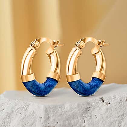 9K Gold 16.5mm Blue Enamel Slight Twist Tube Hoop Creole Earrings
