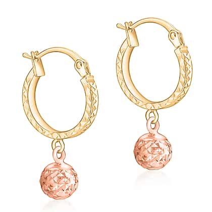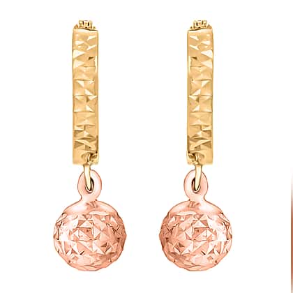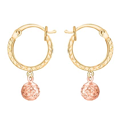9K Two Colour Gold Diamond Cut 12.5mm Hoop and 6mm Ball Earrings