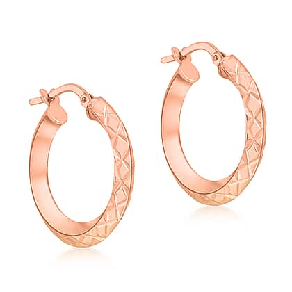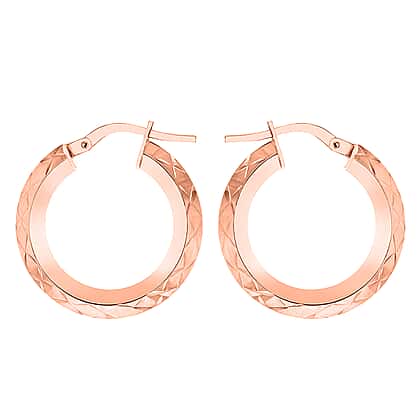 9K Rose Gold 21mm Diamond Cut Triangle Tube Earrings