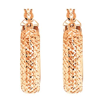 9K Rose Gold 4.5mm x 19mm Diamond Cut Hoop Earrings