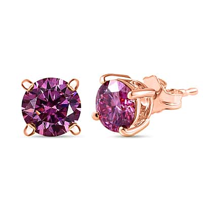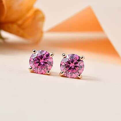 9K Rose Gold Pink Moissanite Stud Solitaire Earrings 2.00 Ct.