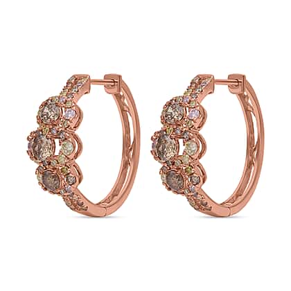 9K Rose Gold SGL Certified Argyle Champagne and Natural Multi Colour Diamond Earrings 2.17 Ct.