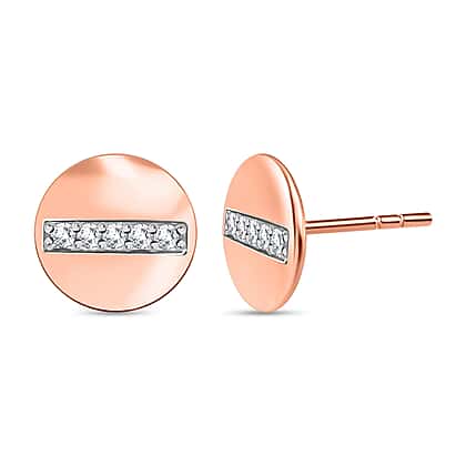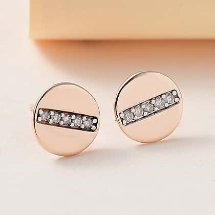 9K Rose Gold Diamond I3 GH Disc Stud Earrings with Push Post
