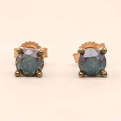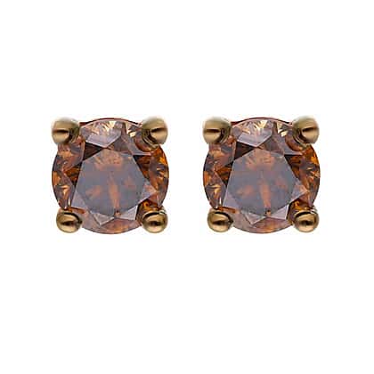 9K Rose Gold SGL Certified Natural Champagne Diamond (I-3) Stud Earrings 1.00 Ct.