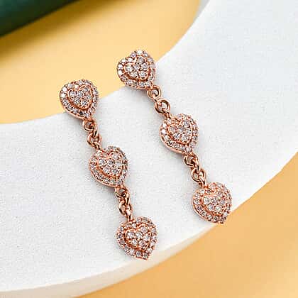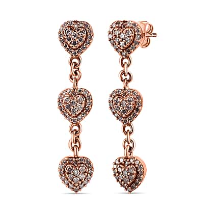 9K Rose Gold SGL Certified Pink Diamond Heart Dangle Earrings 0.50 Ct.