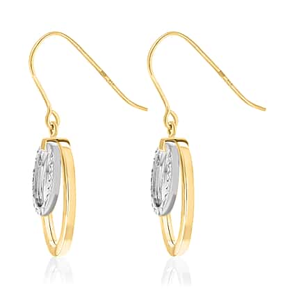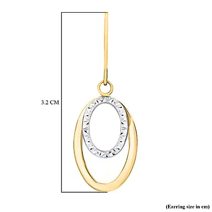 9K Two Colour Gold 12MM X 32MM Diamond Cut Double Oval Drop Earrings 2.1 grams
