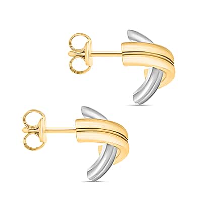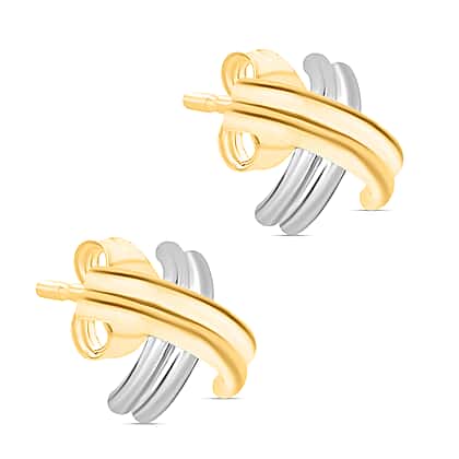 9K Two Colour Gold 13MM X 13MM Crossover Tube Kiss Stud Earrings 1.3 grams