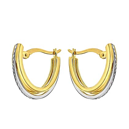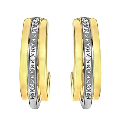 9K Two Colour Gold 14mm X 18mm Diamond Cut Triple Huggie Earrings