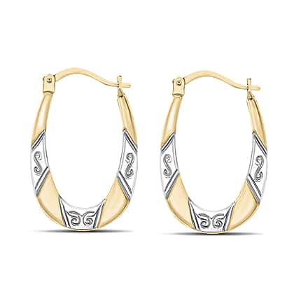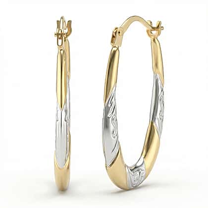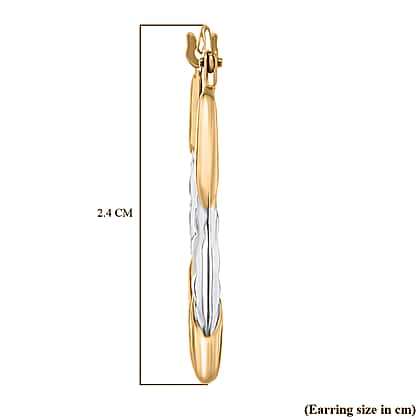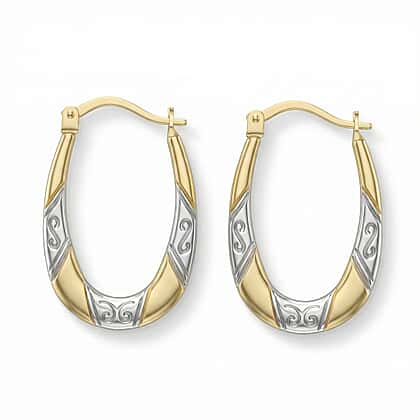 9K Two Colour Gold 15MM X 24MM Patterned Creole Earrings 0.7 grams