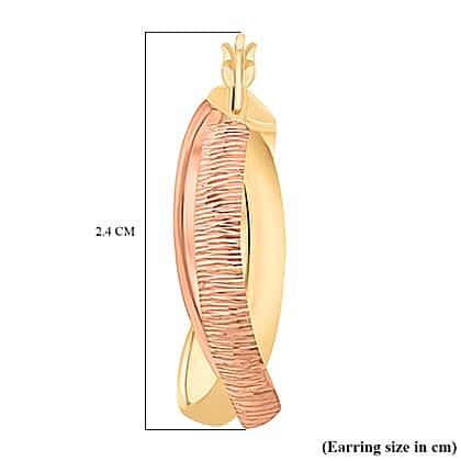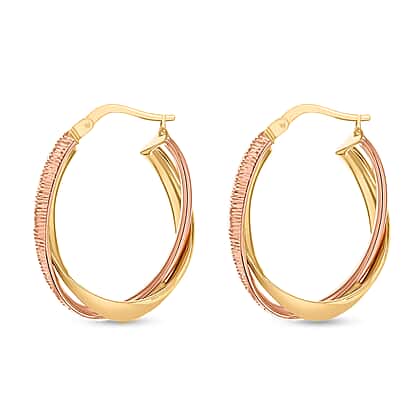 9K Two Colour Gold 19MM X 24MM Diamond Cut Double Oval Creole Hoop Earrings 3.1 grams