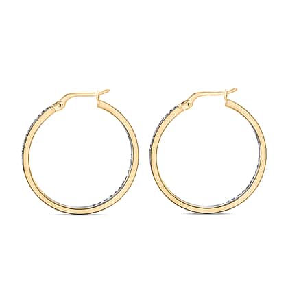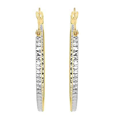 9K Two Colour Gold 28MM Diamond Cut Creole Big Hoop Earrings 1.9 grams