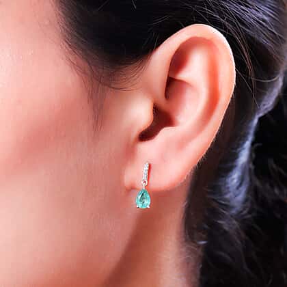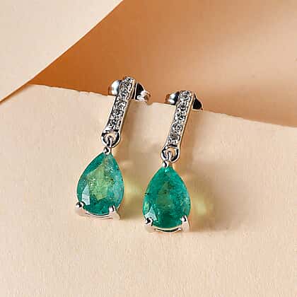 9K White Gold AAA Zambian Emerald , White Diamond I3 Solitaire Stud Push Post Earring 1.21 ct, Gold Wt. 1.02 Gms