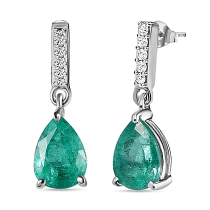 9K Yellow Gold AA Zambian Emerald and Diamond I3 GH Drop Earrings