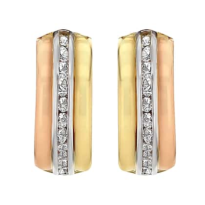 9K Three Colour Gold CZ 5mm x 14mm Half Hoop Earrings