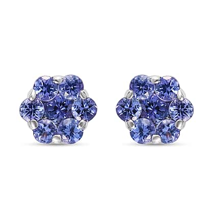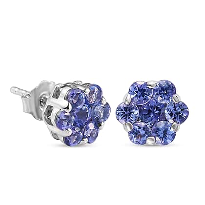 0.935 Ct. Tanzanite Floral Stud Earrings in 9K White Gold