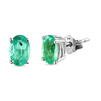 0.85 Ct AA Boyaca Colombian Emerald Solitaire Stud Earrings in 9K White Gold