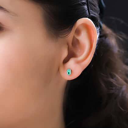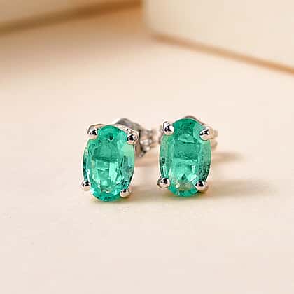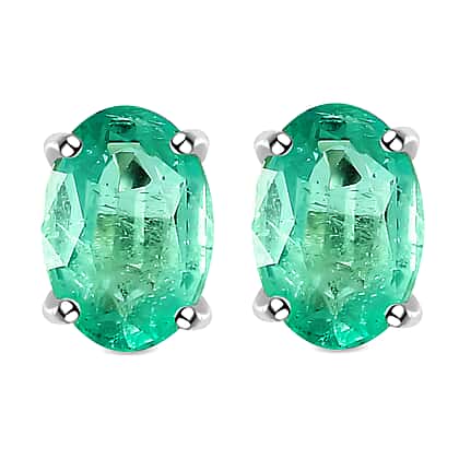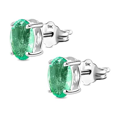 9K White Gold AA Zambian Emerald Earring With Push Back