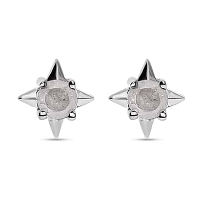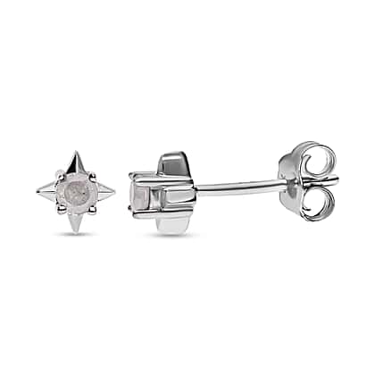 9K White Gold Diamond Star Earrings (with Push Back) 0.10 Ct