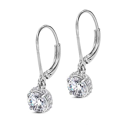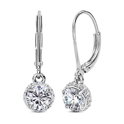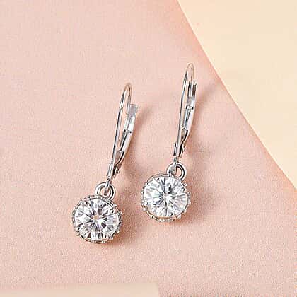 9K White Gold Moissanite Lever Back Earrings 1.72 Ct