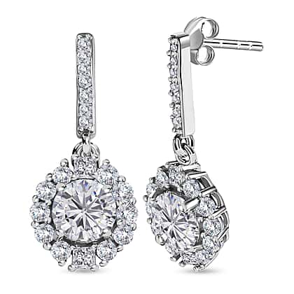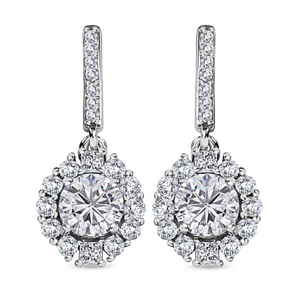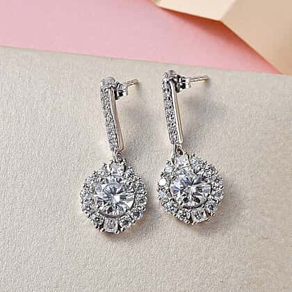 9K White Gold Moissanite Custer Dangling Push Post Earring (With Push Back) 2.39 ct