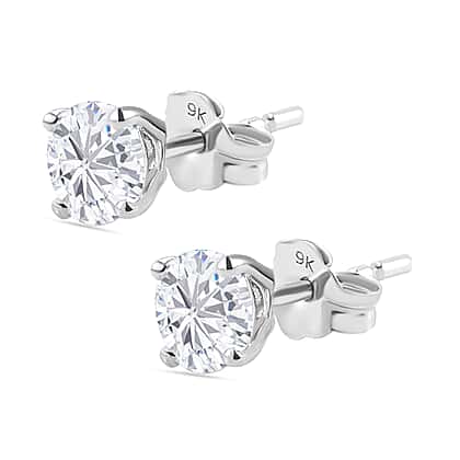 9K White Gold Moissanite Stud Earrings (With Push Back)