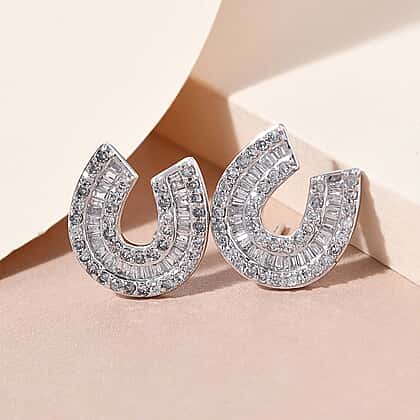9K White Gold SGL Certified Diamond (I3-G-H) Horseshoe Earrings (With Push Back) 1.02 Ct.
