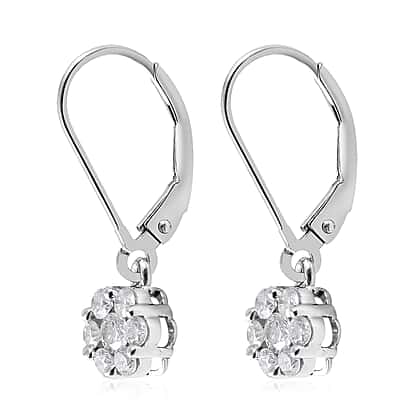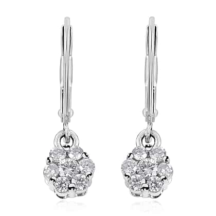 9K White Gold SGL Certified Diamond (I3-GH) Pressure Set Floral Lever Back Earrings 0.50 Ct.