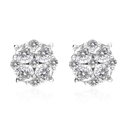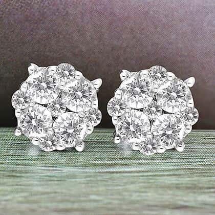 1 Ct. Natural Diamond Floral Stud Earrings in 9K White Gold I3 G-H SGL Certified