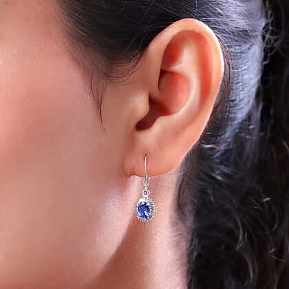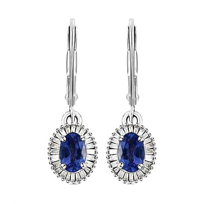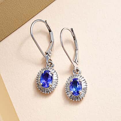 9K White Gold Tanzanite and Diamond Lever Back Earrings 1.44 Ct.