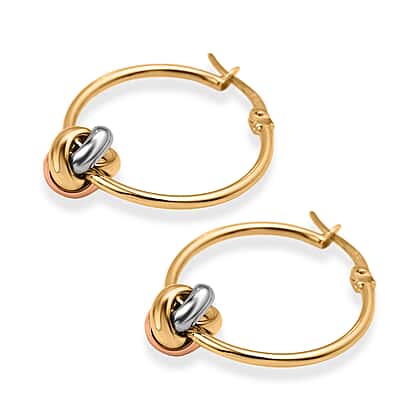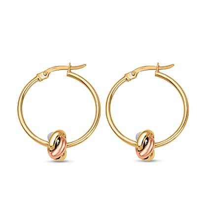 9K White, Yellow and Rose Gold Charm Hoop Earrings (with Clasp)