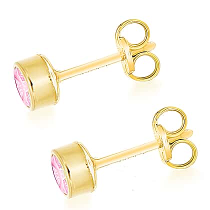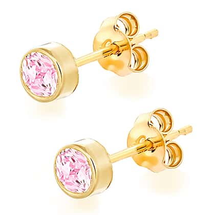 9K Gold Round Pink Cubic Zircon Stud Earrings