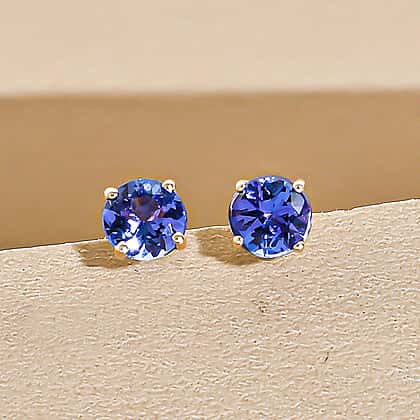 9K Yellow Gold 1.09 Ct AA Tanzanite Solitaire Stud Earrings