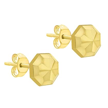 9K Yellow Gold 7mm Diamond Cut Octagonal Stud Earrings