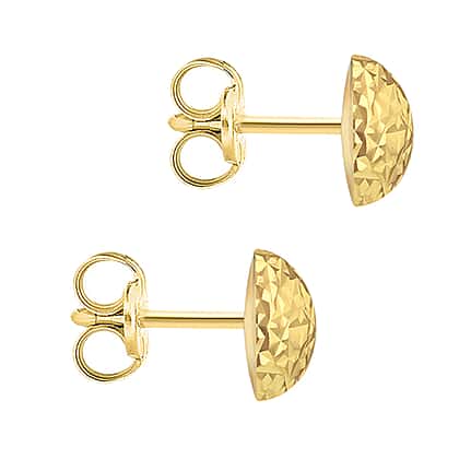 9K Yellow Gold 8mm Diamond Cut Dome Stud Earrings