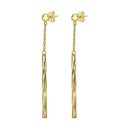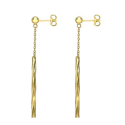 9K Yellow Gold 3mm x 41.5mm Chain and Faceted Bar Drop Earrings
