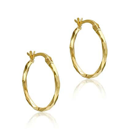 9K Yellow Gold Diamond Cut Faceted 2mm x 20mm Creole Earrings