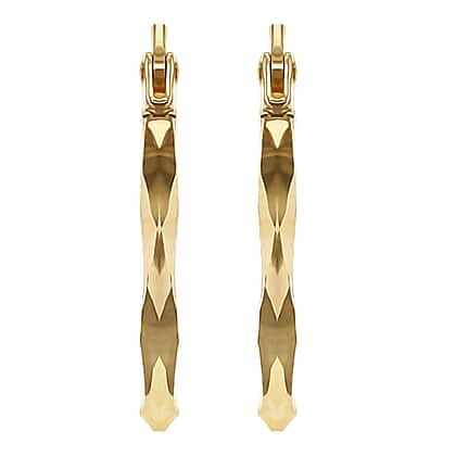 9K Yellow Gold Diamond Cut Faceted 2mm x 20mm Earrings