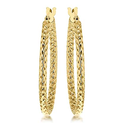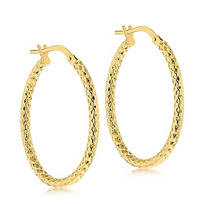 9K Yellow Gold 21mm x 30mm Diamond Cut Oval Hoop Earrings