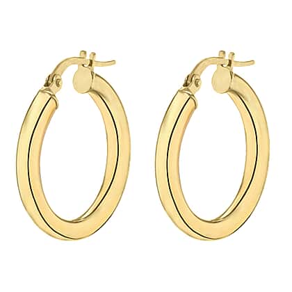 9K Yellow Gold 3mm Round Tube 20mm Polished Hoop Earrings