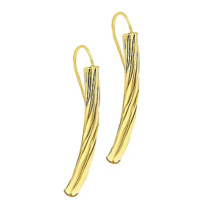 9K Yellow Gold 4mm x 40mm Twist Bar Drop Earrings
