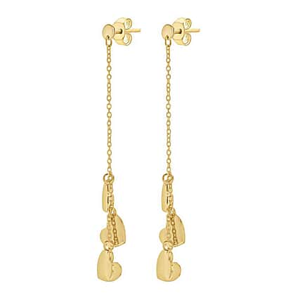 9K Yellow Gold 6mm x 6mm 3 Heart Drop Earrings