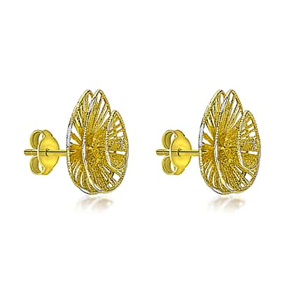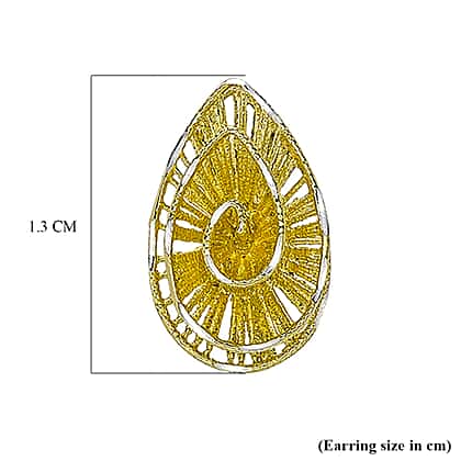 9K 2 Tone Gold 8mm x 13mm Lace Style Swirl Teardrop Stud Earrings