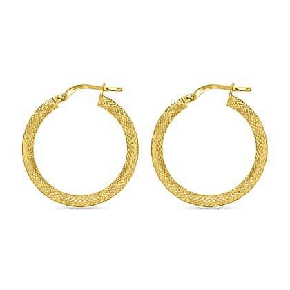 9K Yellow Gold 25mm Textured Round Hoop Earrings