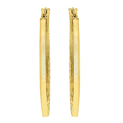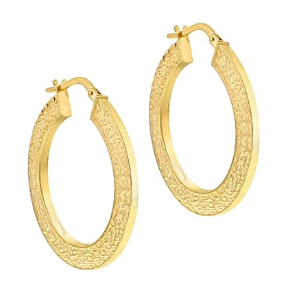 Introducing our exquisite 9K yellow gold textured creole earrings, the perfect finishing touch to any elegant outfit. The earrings are crafted from the finest 9K yellow gold and feature a unique textured design that adds a touch of sophistication and luxury to the piece. The creole style is timeless and versatile, making these earrings suitable for both casual and formal occasions. Their lightweight design makes them comfortable to wear all day, while their sparkling gold finish is sure to catch the eye of those around you. Whether you're dressing up for a special event or simply adding a touch of glamour to your everyday look, these earrings are the perfect choice.