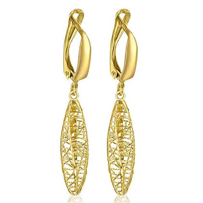 Add the brilliant touch of classic gold to your everyday look with this pair of 9K yellow gold earrings. The elliptical teardrop earrings boast an intricate design that is finely polished to keep them sparkling over regular periods of wear. The dainty earrings are made from 2.1 grams of gold. You can wear these with an evening gown, a party outfit, or pack them for your next romantic vacation.