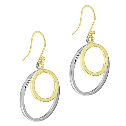 - 9K Two Colour Gold Double Hoop Drop Earrings
