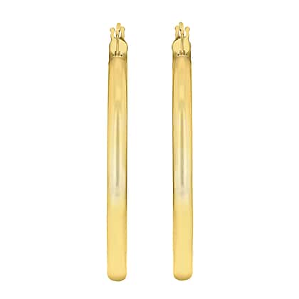 9K Yellow Gold 3mm Round Tube 35mm Polished Earrings