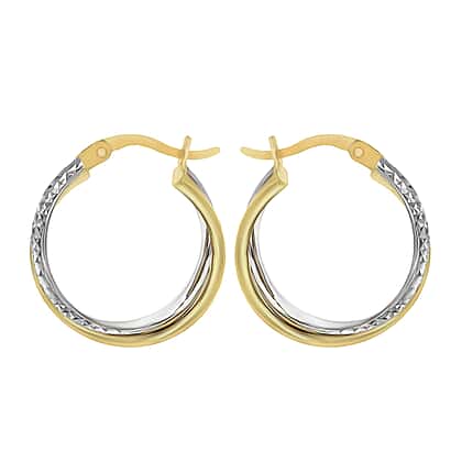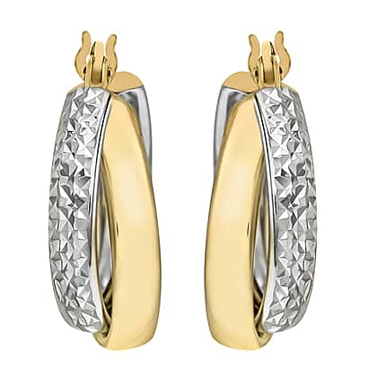 9K Two Colour Gold 18mm Diamond Cut and Plain 3mm Band Crossover Earrings