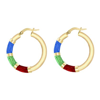 9K Gold 26.5mm Blue Green and Red Enamel Polished Tube Hoop Earrings